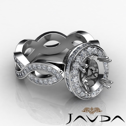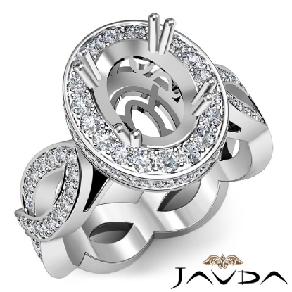 Oval Semi Mount Diamond Engagement Ring Halo Pave Setting Platinum (1.3Ct. tw.)