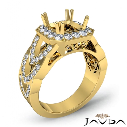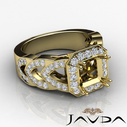 Diamond Engagement Halo Pave Setting 14k Gold Asscher Semi Mount Ring (1.3Ct. tw.)