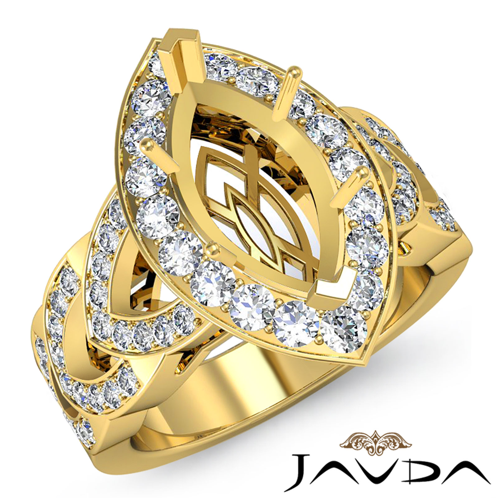 Diamond Engagement Ring Halo Pave Setting Marquise Semi Mount 14k Gold Gold (1.35Ct. tw.)