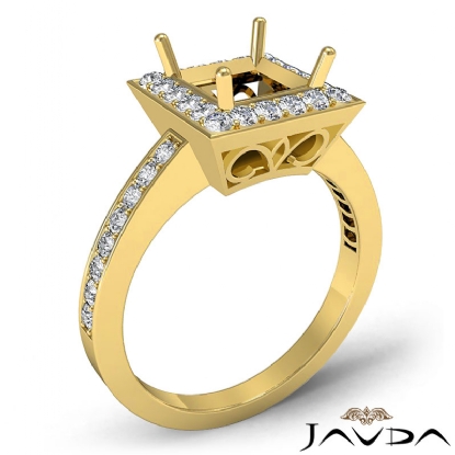 Diamond Engagement Ring Halo Pave Setting Princess Semi Mount 14k Gold (0.38Ct. tw.)