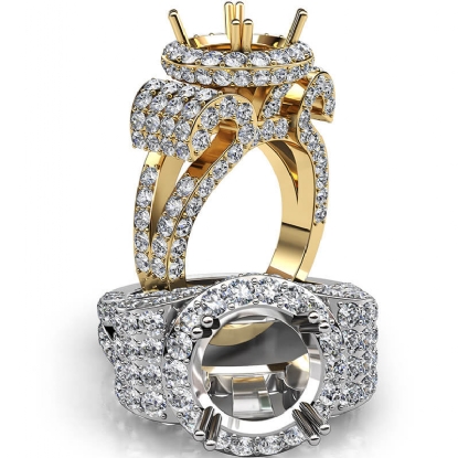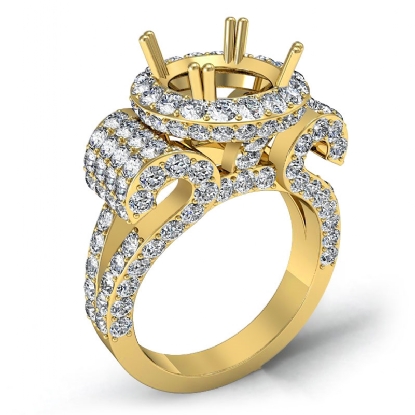 Round Diamond Engagement Ring Antique & Vintage Halo Pave Semi Mount 18k Gold (3.5Ct. tw.)