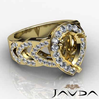 Gorgeous Diamond Engagement Pear Semi Mount Ring Halo Pre-Set 18k Gold (1.29Ct. tw.)