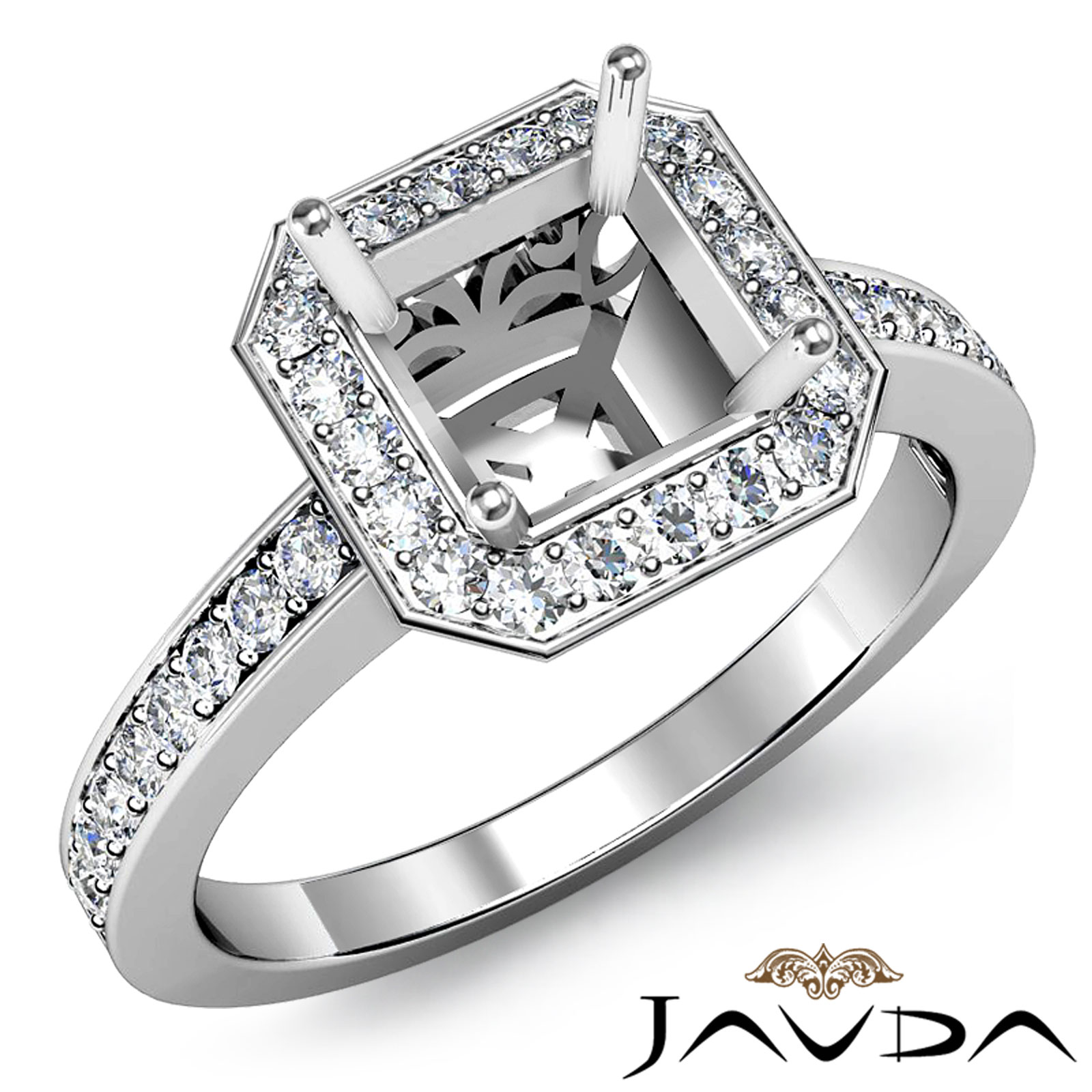 Diamond Engagement Halo Pre-Set Ring Asscher Semi Mount 18k W Gold (0.37Ct. tw.)