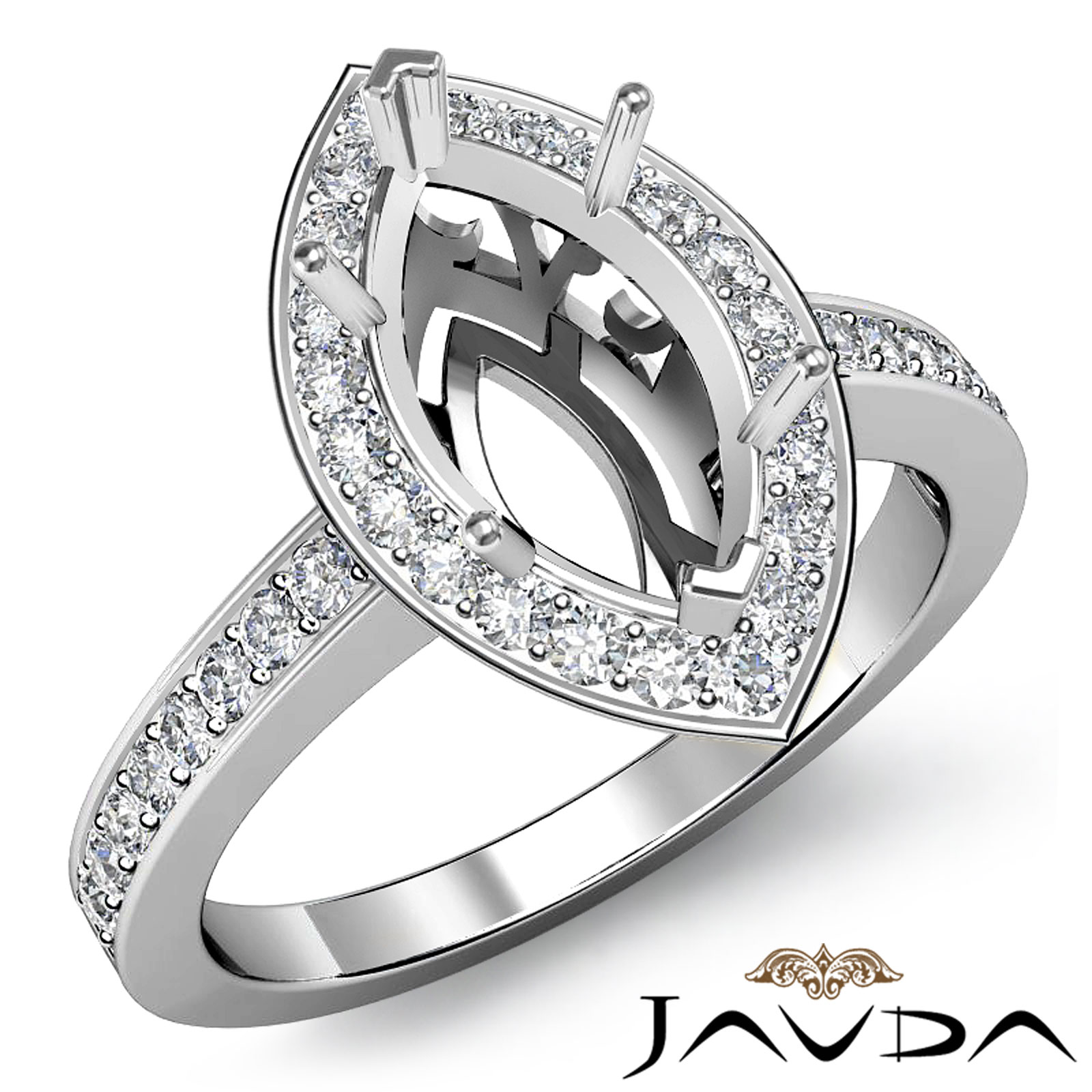 Diamond Engagement Halo Pave Setting Ring Marquise Semi Mount Platinum (0.38Ct. tw.)