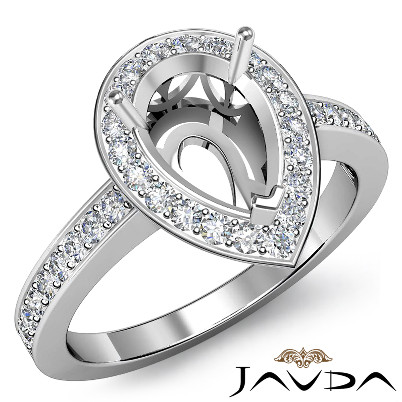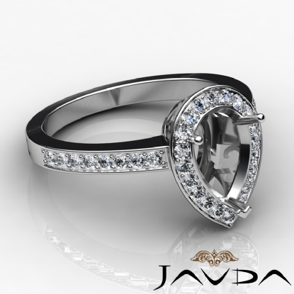 Bring brilliance to life?s great moments, with this pear semi mount diamond engagement ring, Made in 18k Gold White, it features pave set round diamonds in halo & along the shank. (0.39Ct. tw.)