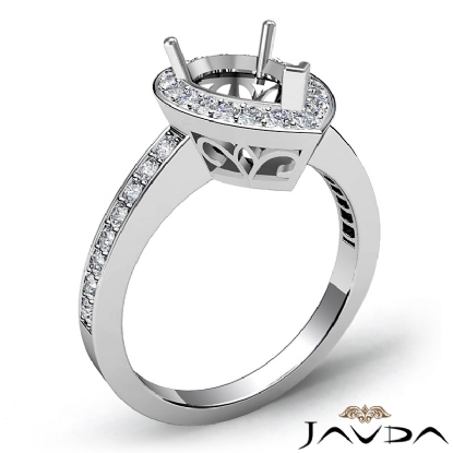 Halo Pre-Set Diamond Engagement Ring Pear Semi Mount 18k W Gold (0.39Ct. tw.)