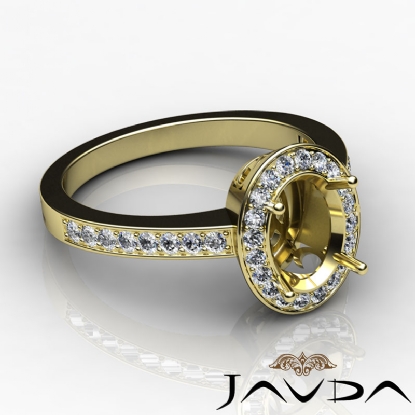 Oval Semi Mount Diamond Engagement Ring 18k Gold Halo Pave Setting (0.36Ct. tw.)