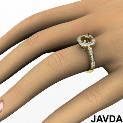 Halo Pave Setting Diamond Engagement Round Semi Mount Ring 18k Gold (0.37Ct. tw.)