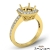 Graceful in design, this classic yet distinctive engagement ring is made in 18k Gold Yellow. This cushion semi mount ring features pave set round diamonds on halo & along the shank. (0.37Ct. tw.)