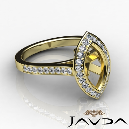 Marquise Diamond Engagement Ring 18k Gold Semi Mount Halo Pave Set (0.52Ct. tw.)