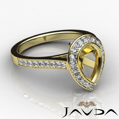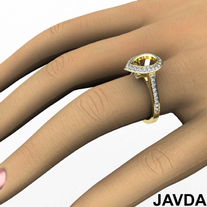 Pear Semi Mount Diamond Engagement Ring 18k Gold Halo Pave Setting (0.55Ct. tw.)
