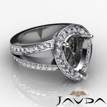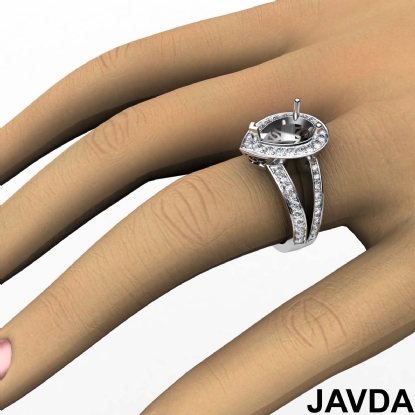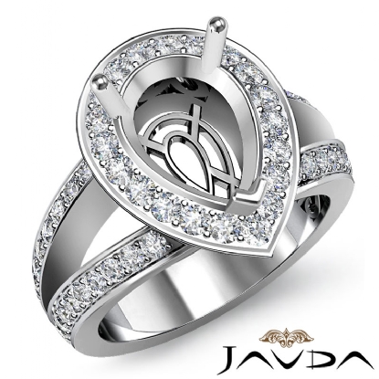 Lavishly showcasing your center semi mount with brilliance, this pear semi mount ring is made in lustrous 18k Gold White. It features pave set round diamonds in halo & along the split shank. (0.65Ct. tw.)
