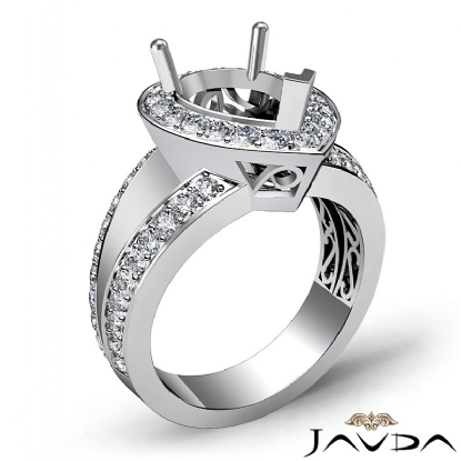 Diamond Engagement 18k W Gold Halo Pave Setting Pear Semi Mount Ring (0.65Ct. tw.)