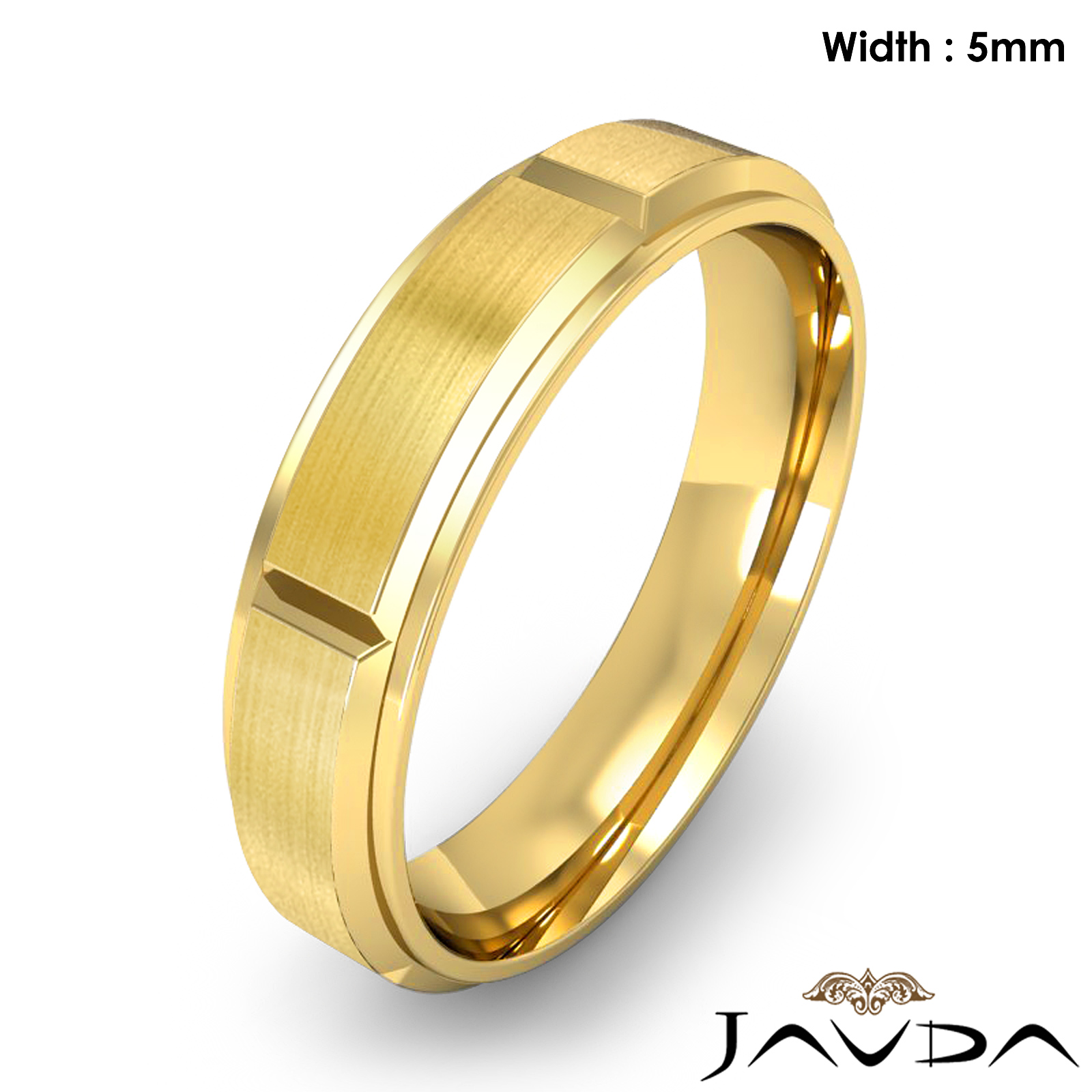 6.8 gram Men's 18k Gold Yellow Solid Beveled Edge Wedding Band. Dome style band. Ring Size is 8". Width is 5mm. Available in high polish and matt finish.