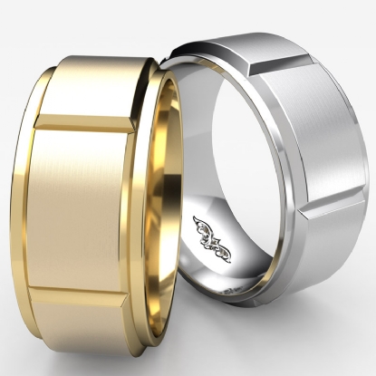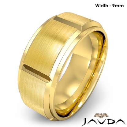 12.2 gram Men's 14k Gold Yellow Solid Beveled Edge Wedding Band. Dome style band. Ring Size is 8". Width is 9mm. Available in high polish and matt finish.