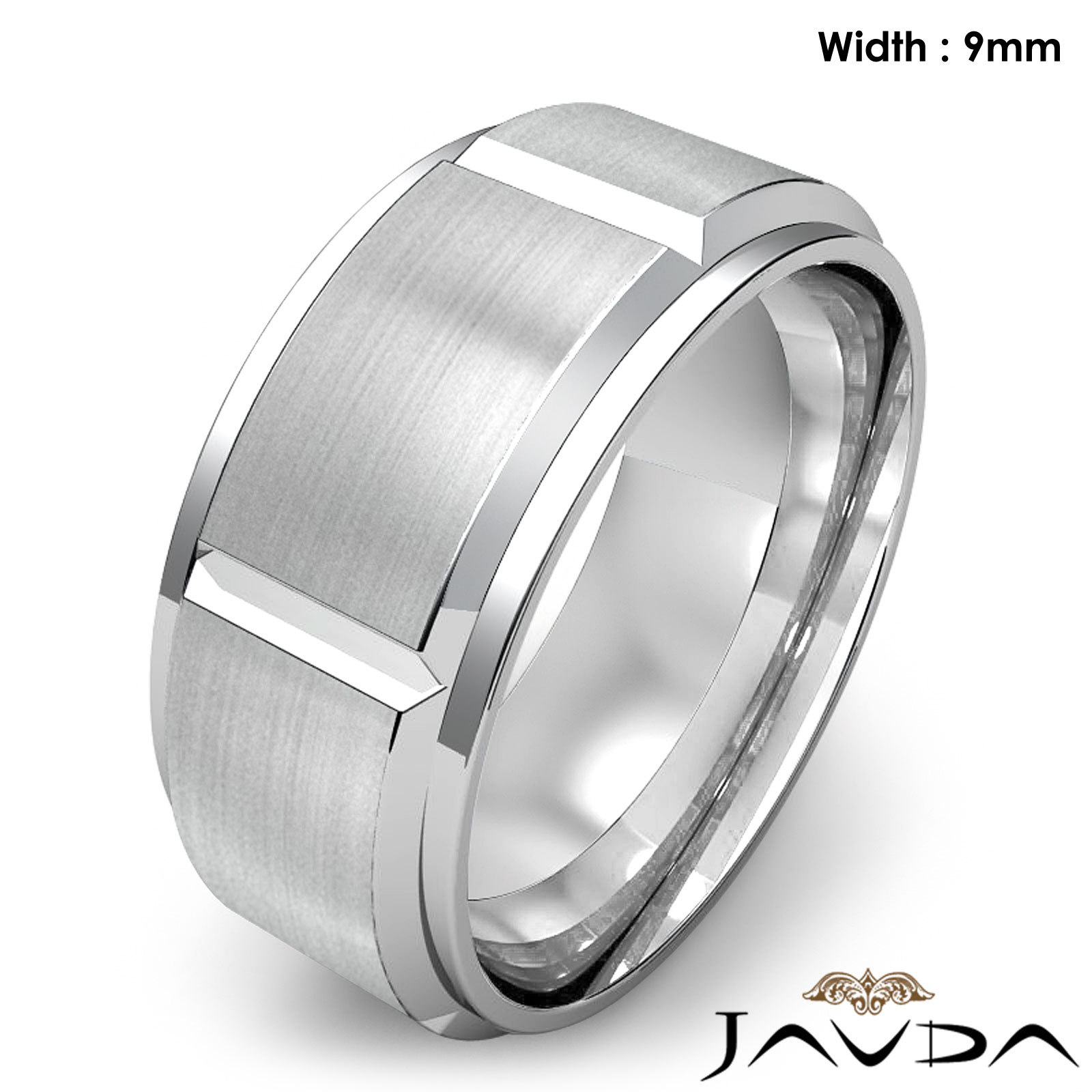 Men's Dome Beveled Edge Wedding Band Solid Ring 9mm Platinum 19.6g 8"