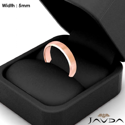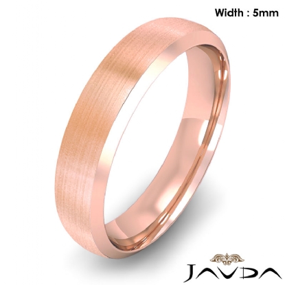 5.5 gram Men's 14k Rose Gold Solid Beveled Edge Wedding Band. Dome style band. Ring Size is 8". Width is 5mm. Available in high polish and matt finish.