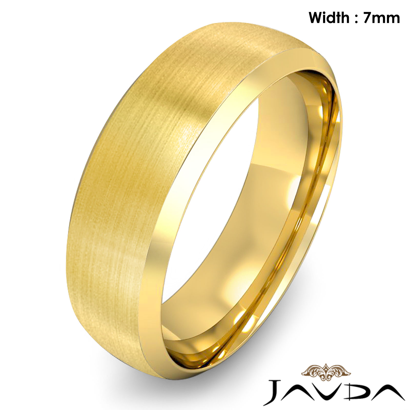 9.6 gram Men's 18k Gold Yellow Solid Beveled Edge Wedding Band. Dome style band. Ring Size is 8". Width is 7mm. Available in high polish and matt finish.