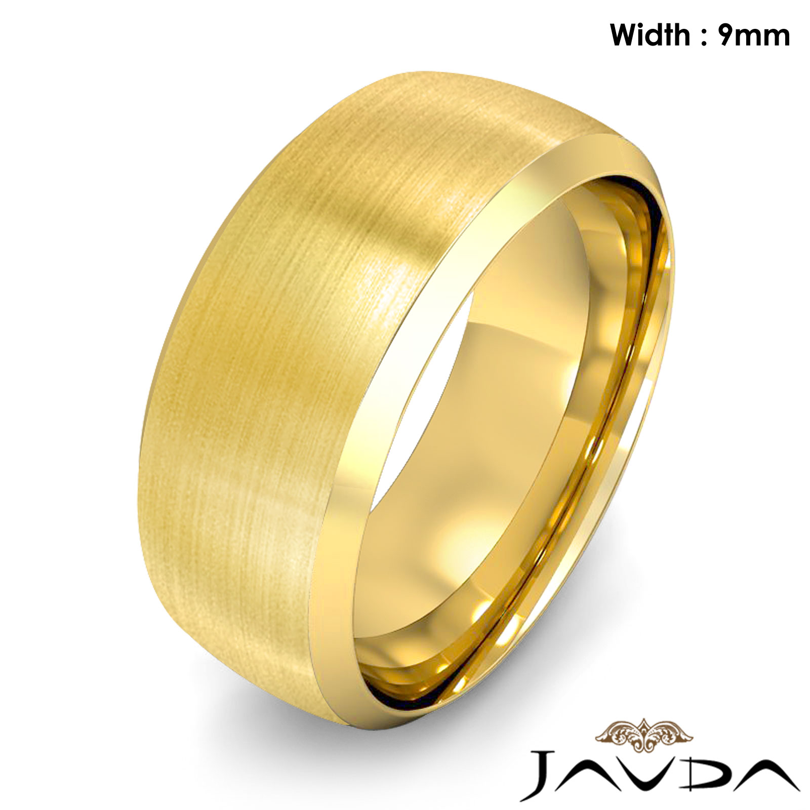 13.4 gram Men's 18k Gold Yellow Solid Beveled Edge Wedding Band. Dome style band. Ring Size is 8". Width is 9mm. Available in high polish and matt finish.