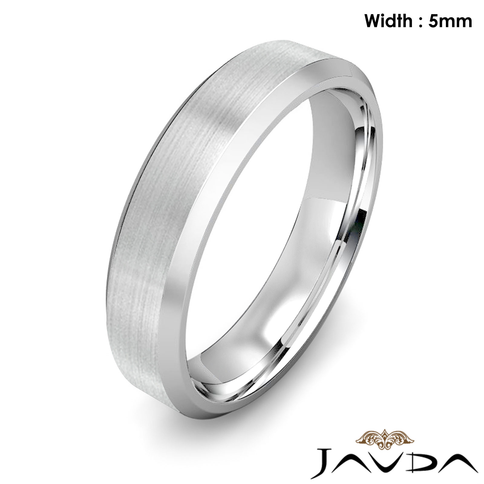 Flat Beveled Edge Men's Wedding Band Platinum Solid Ring 5mm 10.6g 8"