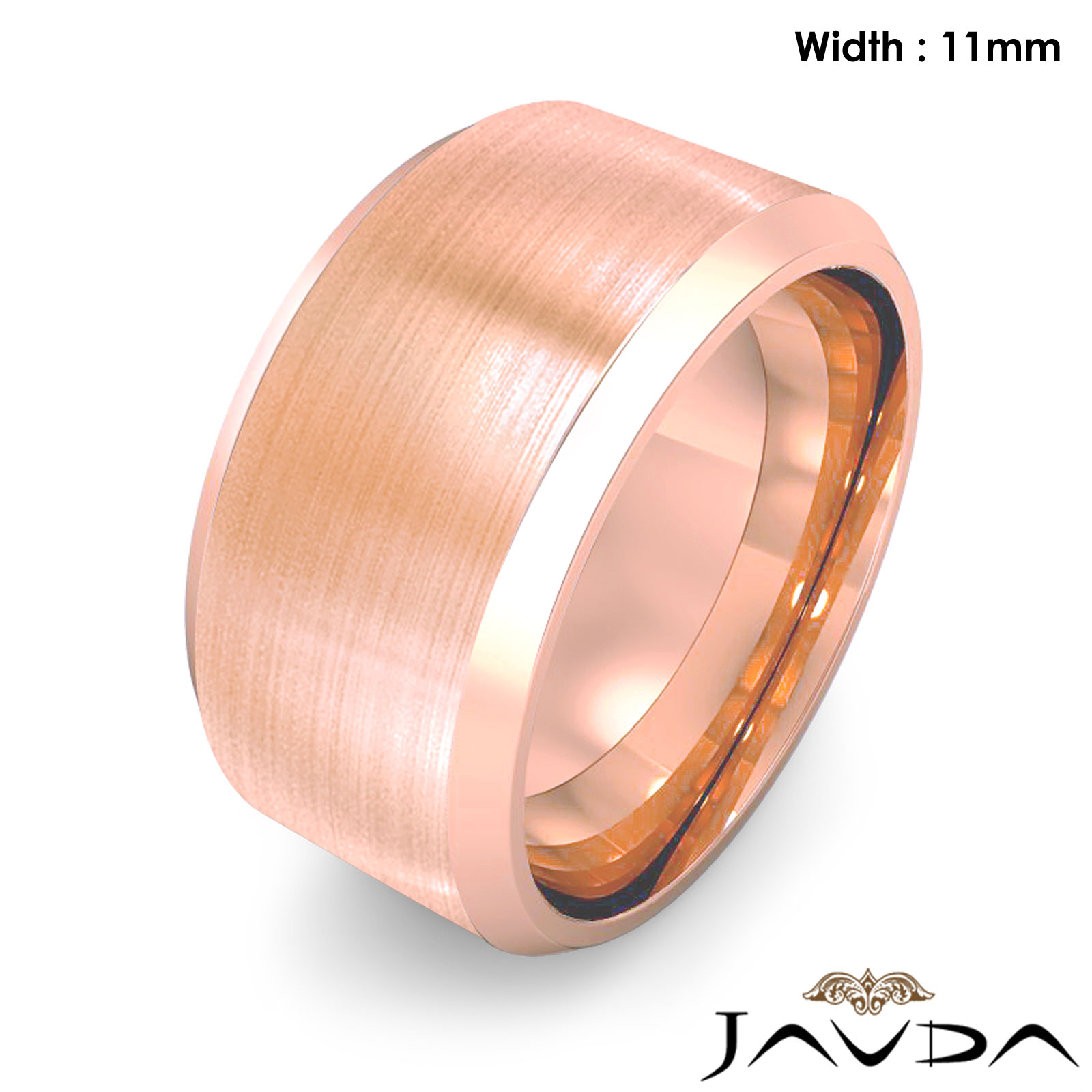 Flat Beveled Edge Men's Wedding Band 14k Rose Gold Solid Ring 11mm 17.4g 8"