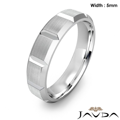 Beveled Edge Men's Dome Wedding Band 18k W Gold Solid Ring 5mm 7.3g 8"