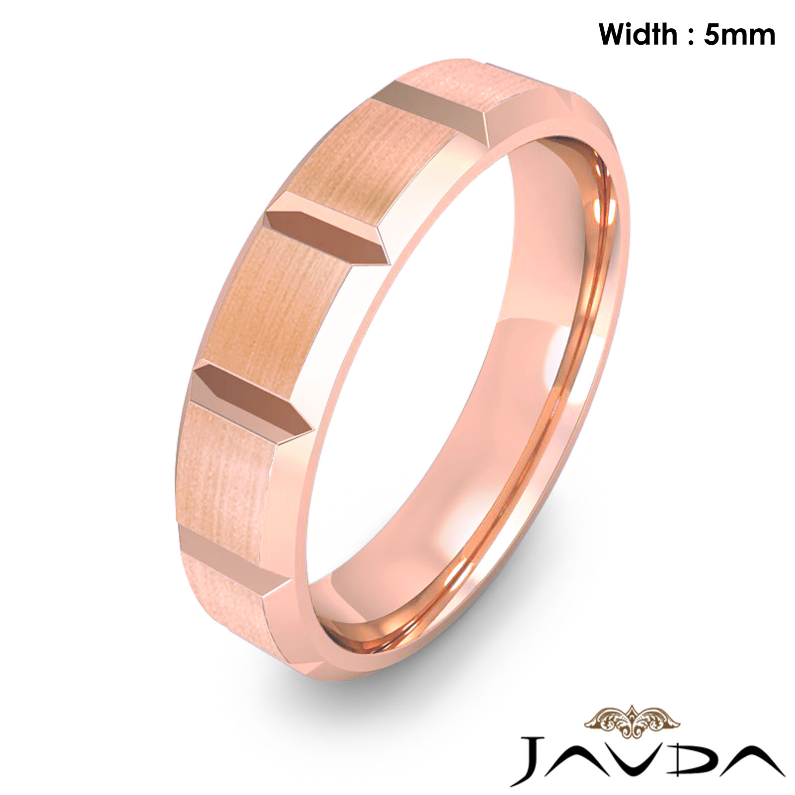 6.3 gram Men's 14k Rose Gold Solid Beveled Edge Wedding Band. Dome style Traditional band. Ring Size is 8". Width is 5mm. Available in high polish and matt finish.
