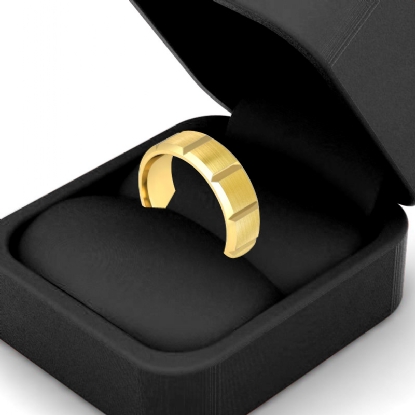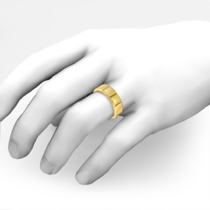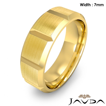 9.5 gram Men's 14k Gold Yellow Solid Beveled Edge Wedding Band. Dome style Traditional band. Ring Size is 8". Width is 7mm. Available in high polish and matt finish.