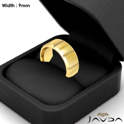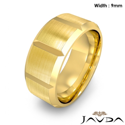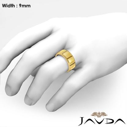 13 gram Men's 14k Gold Yellow Solid Beveled Edge Wedding Band. Dome style Traditional band. Ring Size is 8". Width is 9mm. Available in high polish and matt finish.