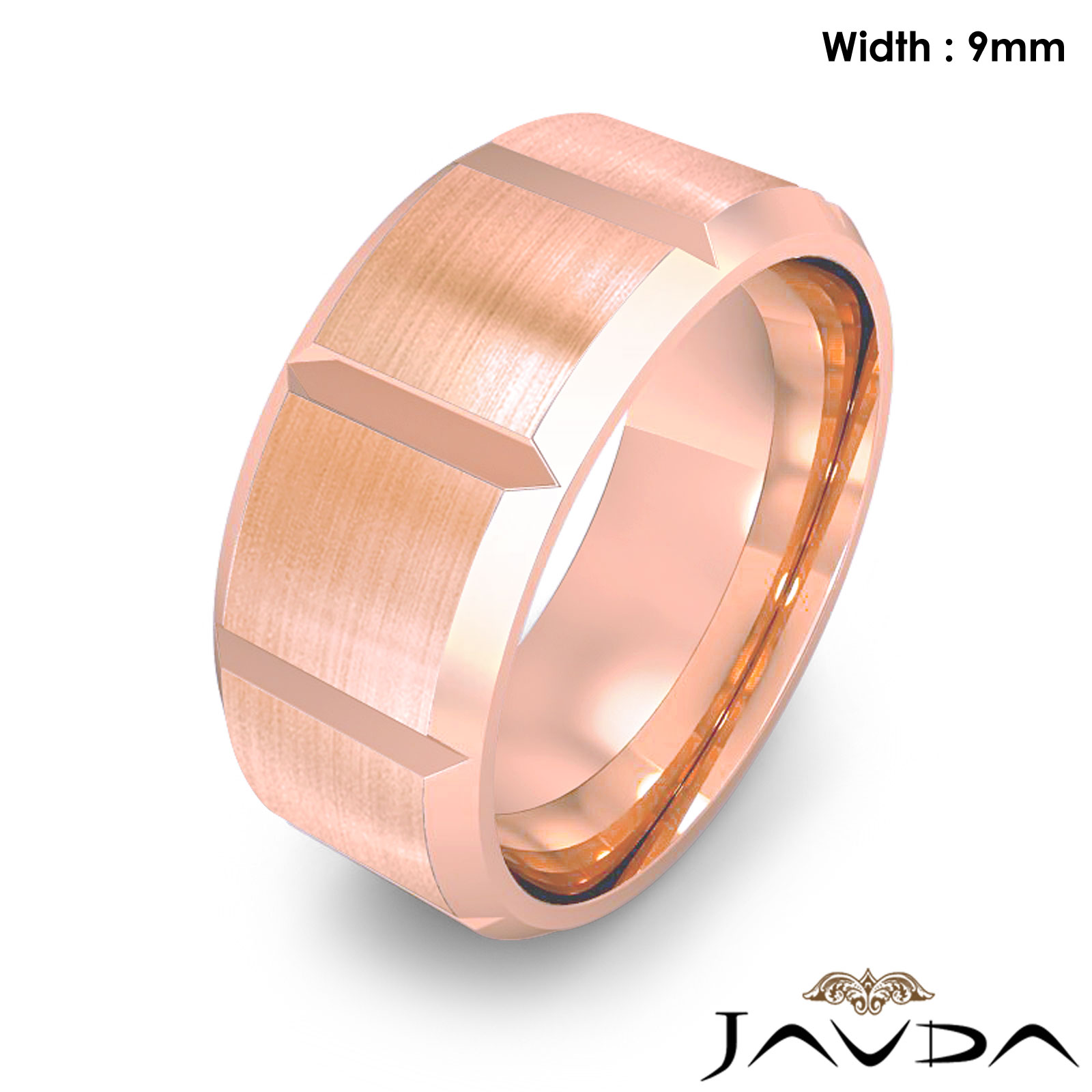 Beveled Edge Men's Dome Wedding Band 14k Rose Gold Solid Ring 9mm 13g 8"