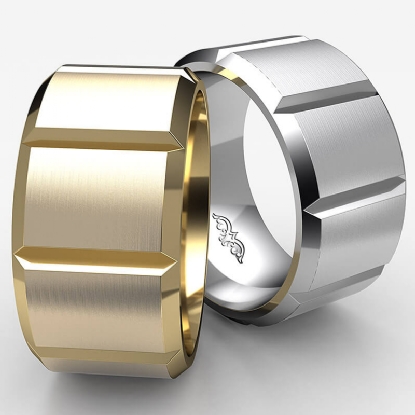 Beveled Edge Men's Dome Wedding Band 18k Gold Solid Ring 11mm 19.5g 8"