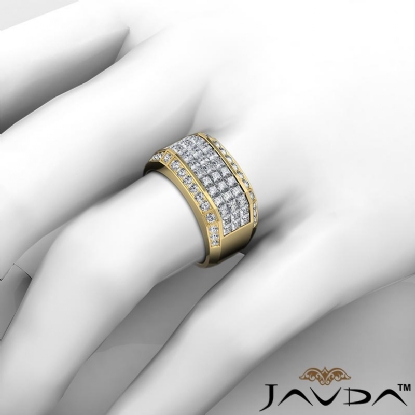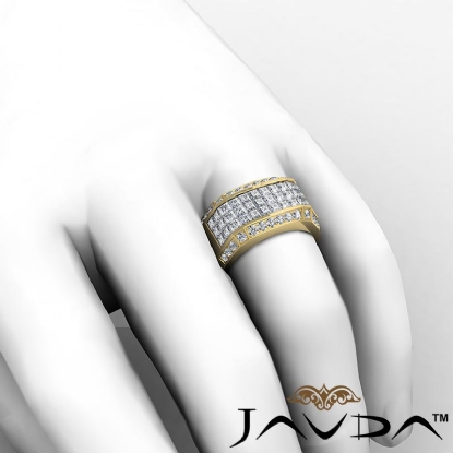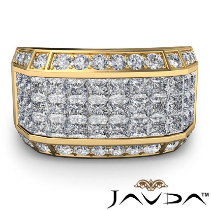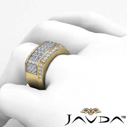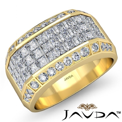 Center 2.90 ctw. Princess Diamond & Side 0.60 ctw. Round Diamond Mens Diamond Ring Invisible Set made in 14k Gold Yellow. (3.5Ct. tw.)