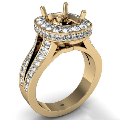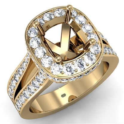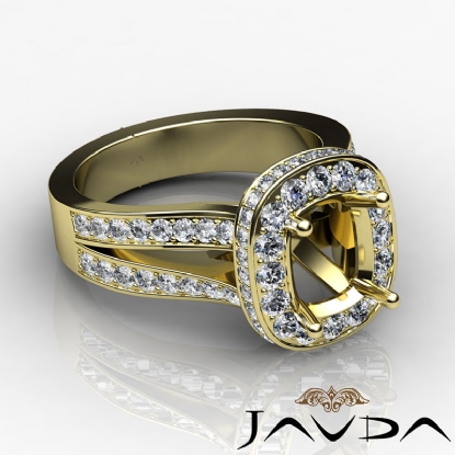Diamond Engagement Cushion Semi Mount Ring14k Gold Pave Set Split Shank (1.4Ct. tw.)