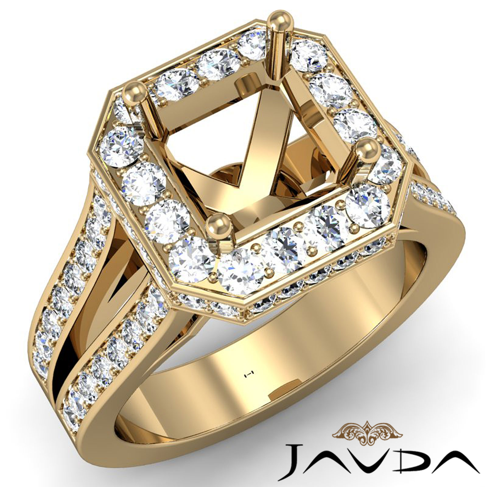 Diamond Engagement Ring 18k Gold Pre-Set Split Shank Asscher Semi Mount (1.35Ct. tw.)
