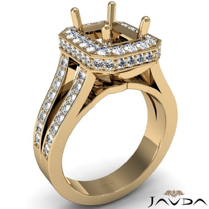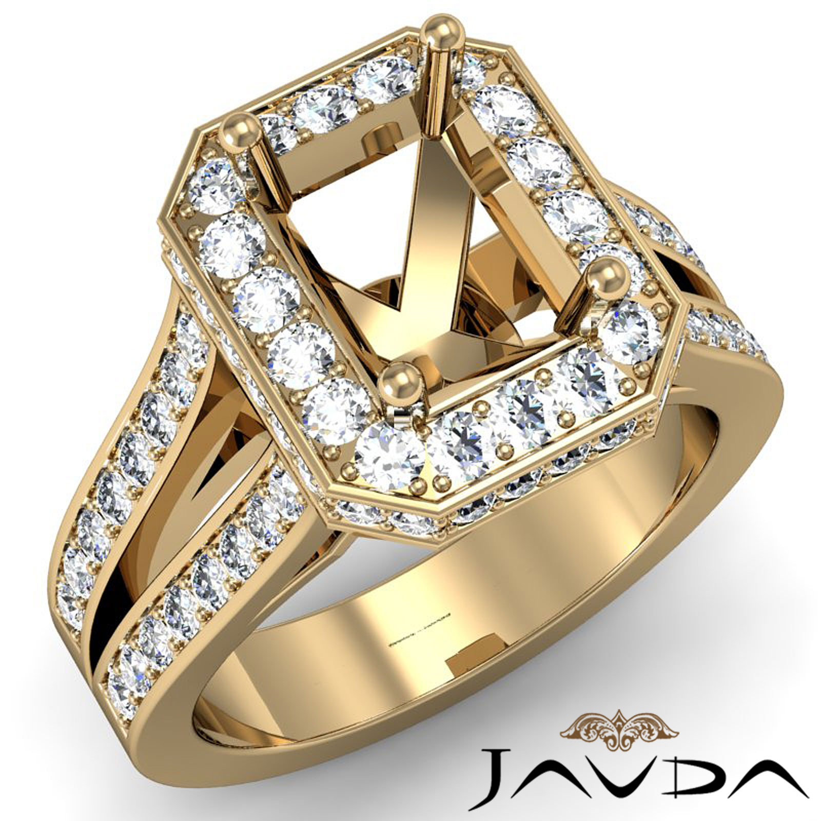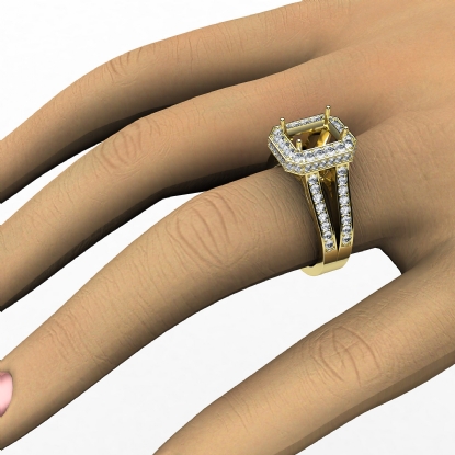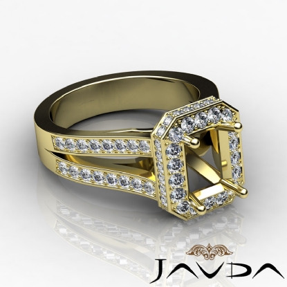 Diamond Engagement Emerald SemiMount Pave Set Ring 18k GoldSplit Shank (1.33Ct. tw.)