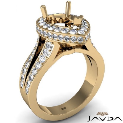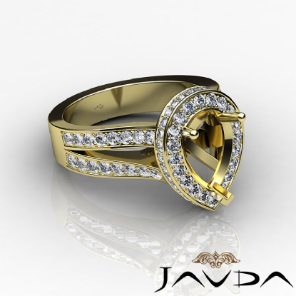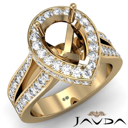 Diamond Engagement Pear Semi Mount Pave Set Ring 14k Gold Split Shank (1.32Ct. tw.)