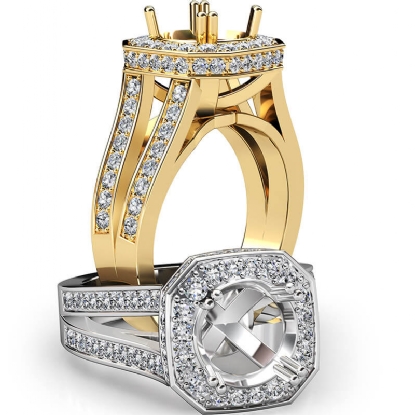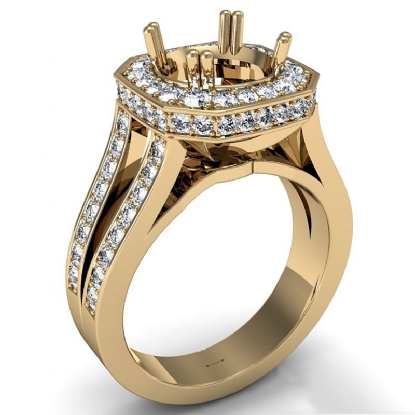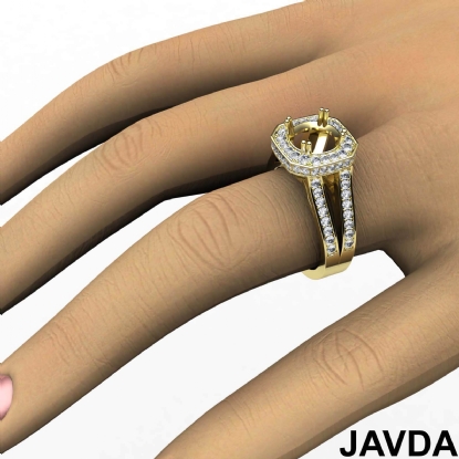 Pre-Set Diamond Engagement Ring 18k Gold Cushion Semi Mount Split Shank (1.34Ct. tw.)