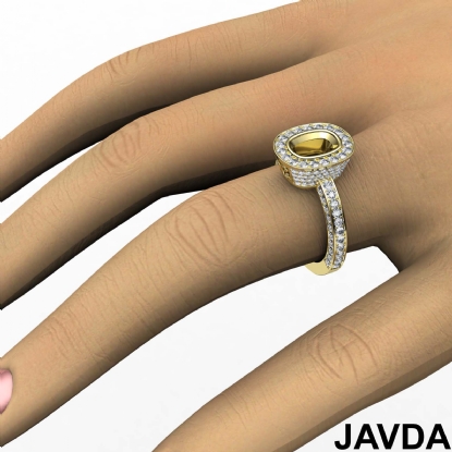 Cushion Diamond Engagement Bezel Halo Semi mount Ring 14k Gold Yellow (1.54Ct. tw.)