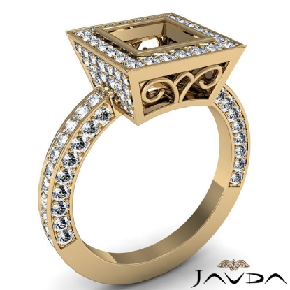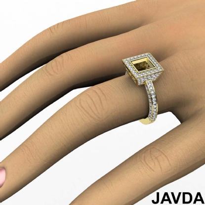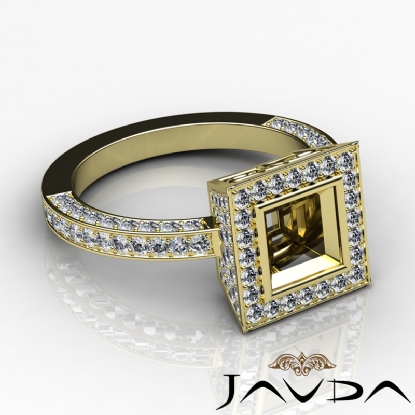 Princess Semi Mount Diamond Engagement Bezel Halo Set Ring 18k Gold (1.48Ct. tw.)