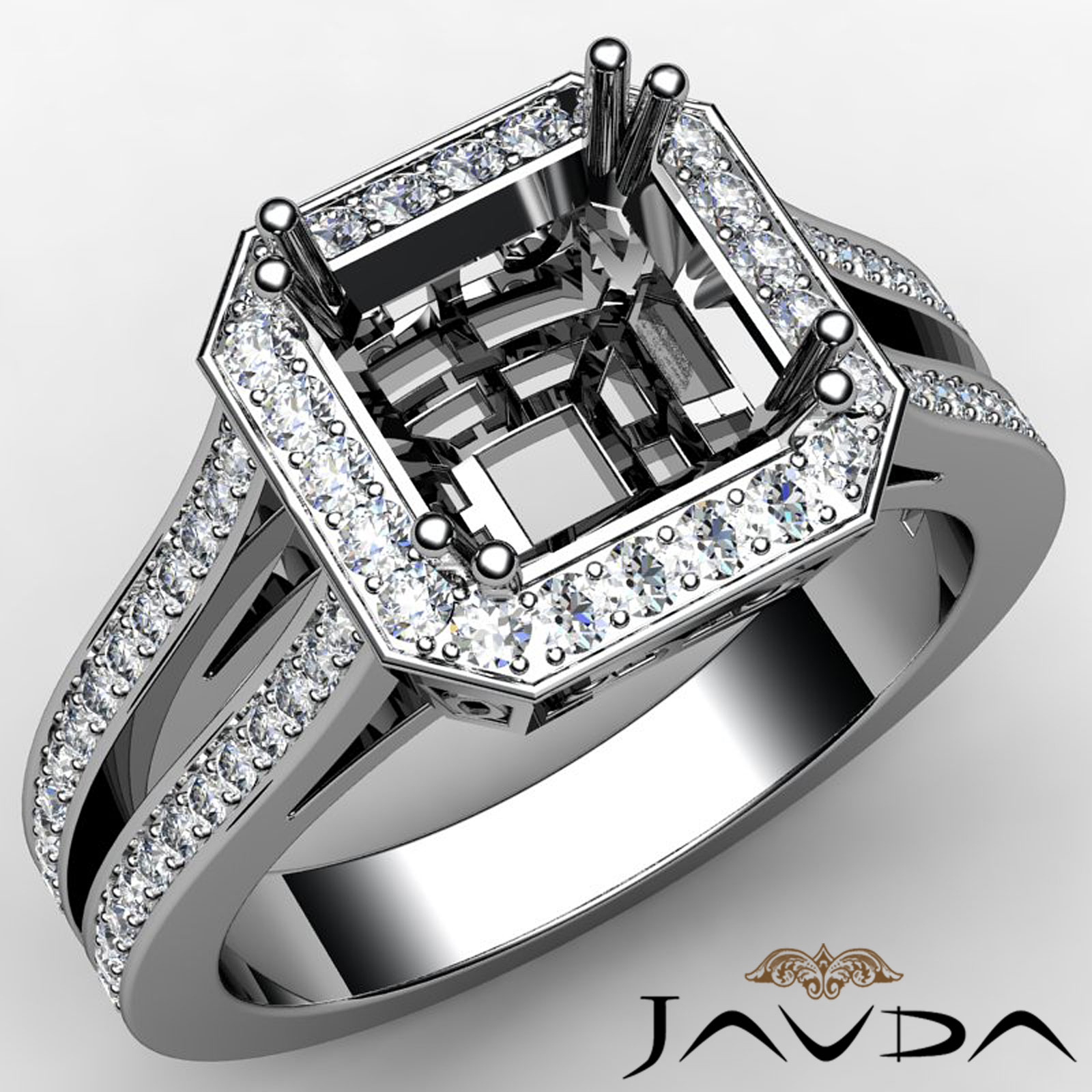Halo Setting Diamond Engagement Asscher Ring Platinum Semi Mount (0.88Ct. tw.)