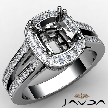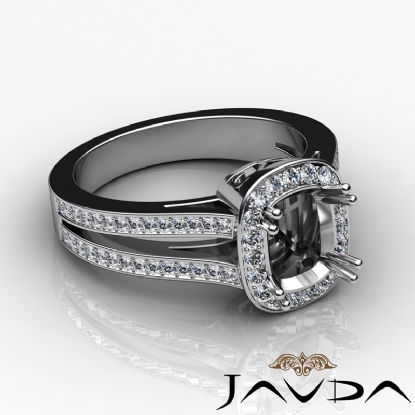 Cushion Diamond Engagement Ring 18k W Gold Halo Setting Semi Mount (0.86Ct. tw.)