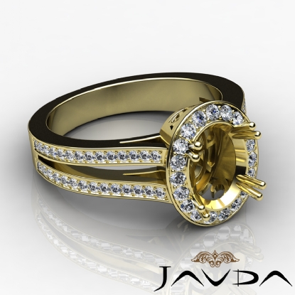 Get ready for glamour, with this striking diamond engagement ring made in 14k Gold Yellow. This oval semi mount ring features round pave set diamonds in halo & along the spectacular shank. (0.94Ct. tw.)