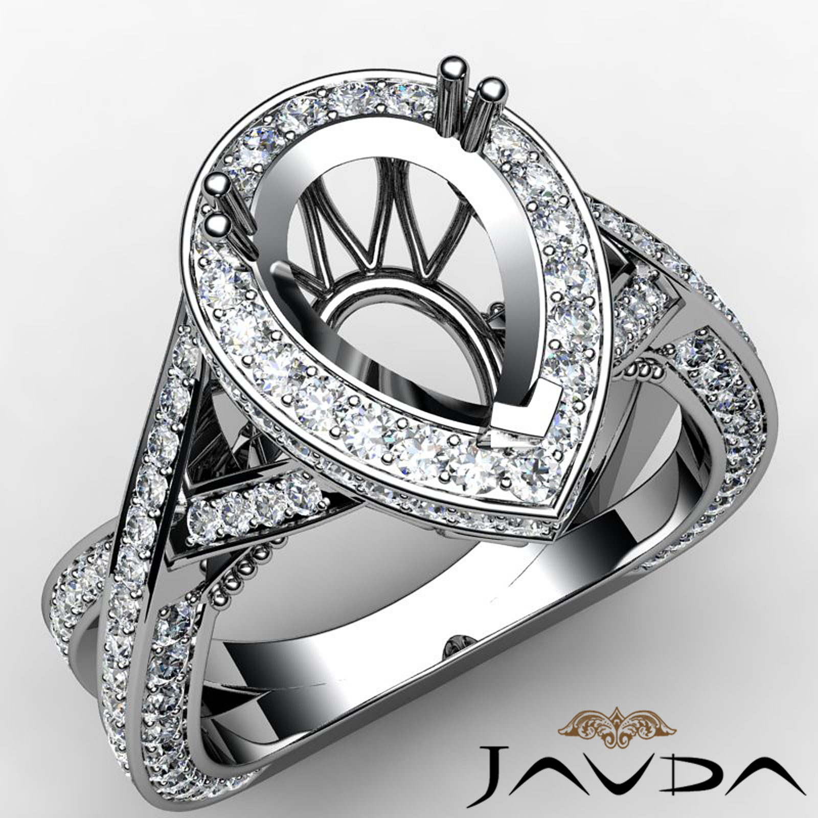 Diamond Engagement Pear Semi Mount Halo Pave Setting Ring 18k W Gold (1.45Ct. tw.)