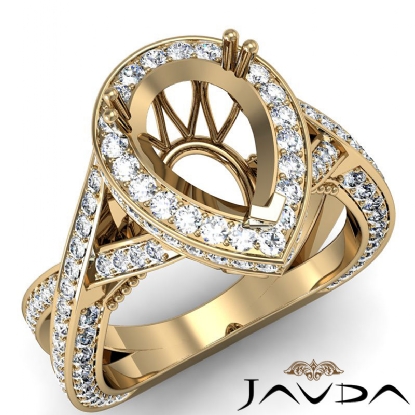 Diamond Engagement Pear Semi Mount Halo Pave Setting Ring 18k Gold (1.45Ct. tw.)