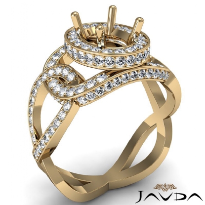 Halo Pave Setting Oval Semi Mount Diamond Engagement Ring 18k Gold (1.33Ct. tw.)