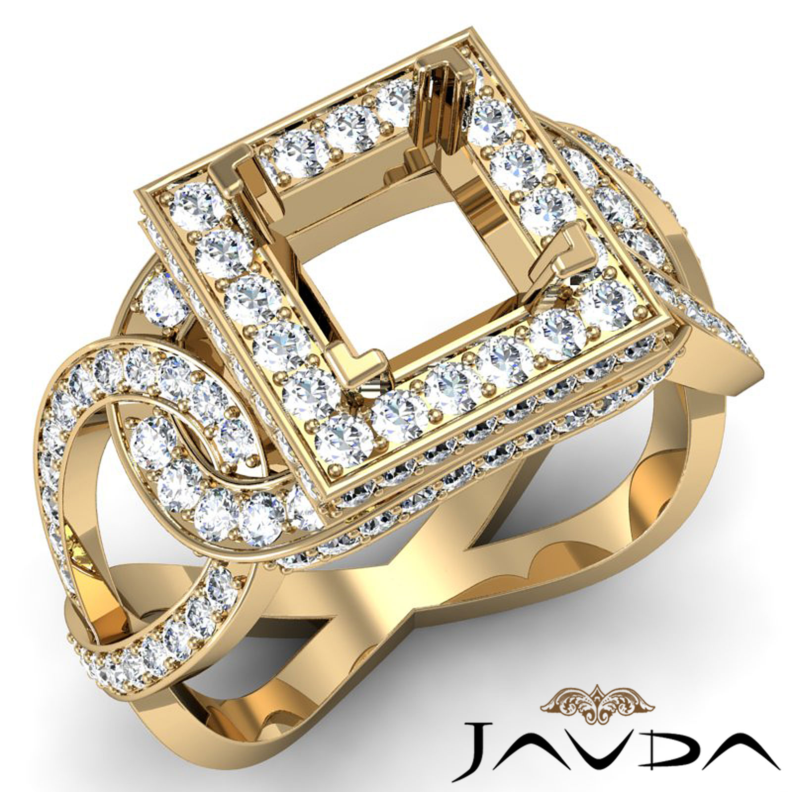 Diamond Engagement Princess Semi Mount Halo Pave Set Ring 18k Gold (1.25Ct. tw.)