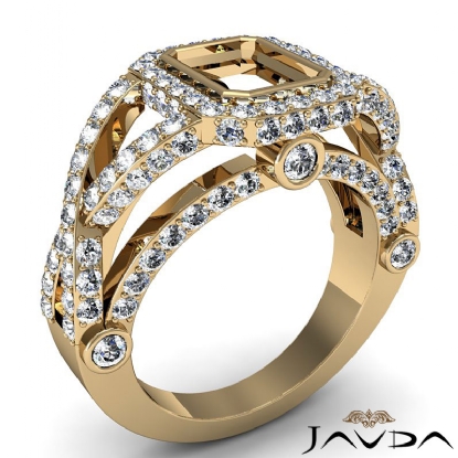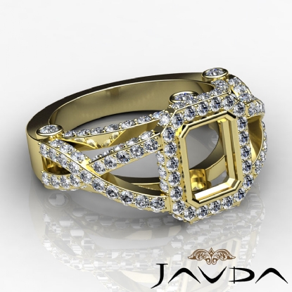 Lavishly romantic, this diamond engagement ring is made in glorious 14k Gold Yellow. This emerald semi mount ring features of pave set round diamonds in halo & along the gorgeous shank. (1.38Ct. tw.)