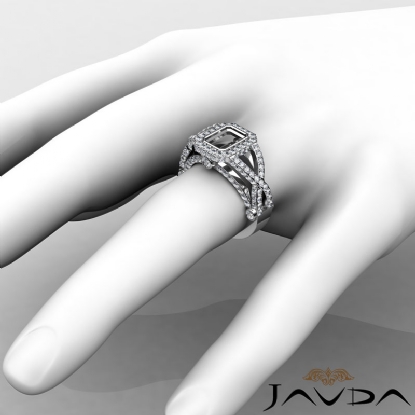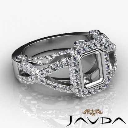 Emerald Semi Mount Diamond Engagement Ring Platinum Halo Setting (1.38Ct. tw.)