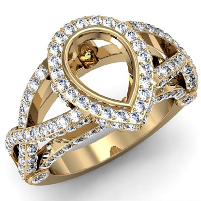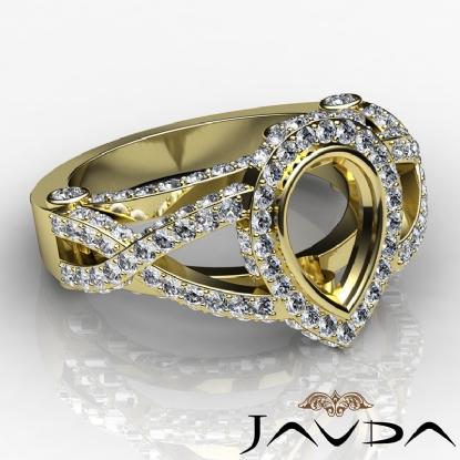 Pear Semi Mount Diamond Engagement Ring Halo Pave Setting 18k Gold (1.36Ct. tw.)
