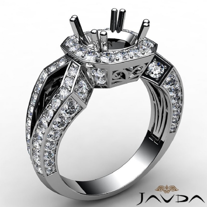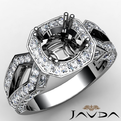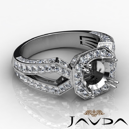 Round Cut Diamond Engagement Ring Semi Mount 18k W Gold Halo Setting (1.45Ct. tw.)